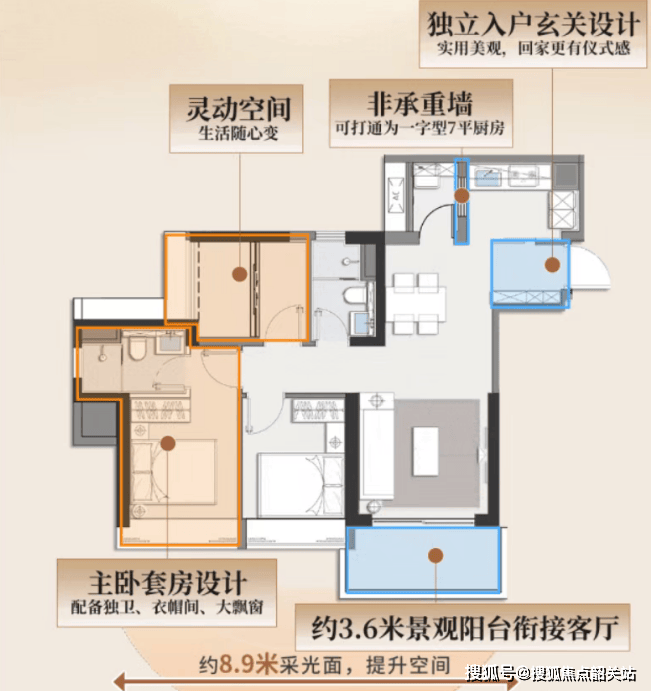 主力户型涵盖了87平方米的两房至三房,以及107平方米的改善型四房。在87平方米的空间里,设计团队采用了少承重墙化的处理方式,使得次卧可以根据家庭生命周期灵活打通或隔断,生活阳台也可与厨房连通,形成一个约7平方米的全明操作空间。值得注意的是,该户型配备了独立主卧套房,包含独立卫生间,这在同面积段的市场产品中较为少见,有效提升了居住的私密性。107平方米的户型则更强调公共空间的交互性,约26平方米的LDK(客餐厨)一体化设计,打破了传统隔墙的界限,配合双阳台结构,既增加了采光面,又提供了独立的洗衣晾晒区。全屋交付标准中包含了中央空调、新风系统、净水系统及家居安防系统,这些细节的堆叠,旨在提升高层住宅的居住舒适度,尤其是在广州湿热的夏季和空气质量波动较大的时节。